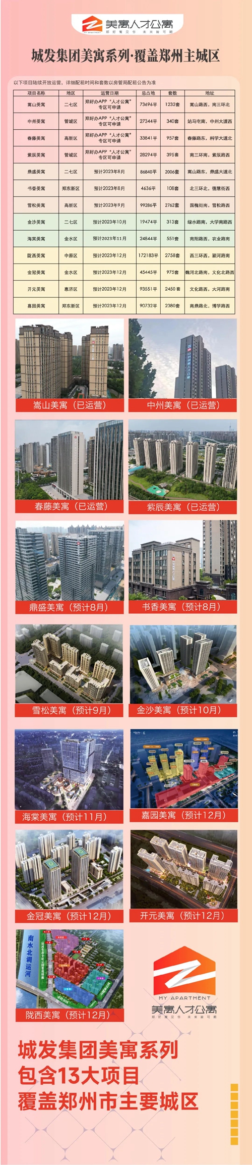 鄭州城市發(fā)展集團(tuán)有限公司自覺踐行“讓城市更美麗、讓生活更美好”的企業(yè)使命,持續(xù)聚焦城市有機(jī)更新項(xiàng)目,積極為鄭州高品質(zhì)城市建設(shè)貢獻(xiàn)力量。鄭州城發(fā)集團(tuán)圍繞市委、市政府引才工作要求,全力打造“美寓”系列人才公寓,不斷優(yōu)化人才發(fā)展環(huán)境,讓人才在鄭州既能盡情施展才華、又能悅享生活。