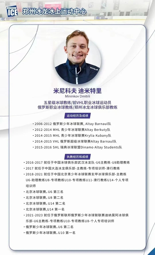 鄭州奧體冰龍冰上運(yùn)動(dòng)中心是一座現(xiàn)代化冰上訓(xùn)練綜合場(chǎng)館。新年伊始,冰龍冰上運(yùn)動(dòng)中心迎來(lái)國(guó)際知名冰球教練米尼科夫·迪米特里,國(guó)家E級(jí)教練員趙鐵北、馬騰飛入駐,將通過(guò)豐富的執(zhí)教經(jīng)驗(yàn)和專業(yè)知識(shí),為河南冰雪運(yùn)動(dòng)注入鮮活動(dòng)力!