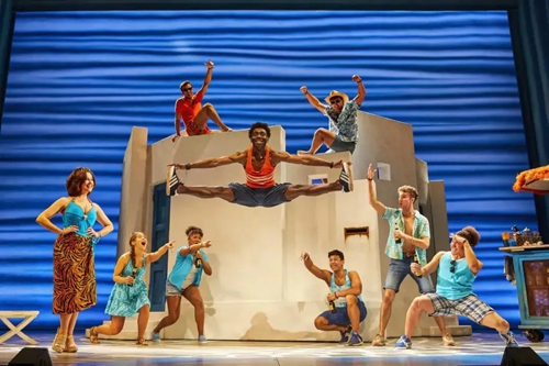 迪斯科風(fēng)格在《媽媽咪呀!》中無(wú)處不在。從音樂(lè)、舞蹈,到服裝設(shè)計(jì),都給人以舞廳“蹦迪”的動(dòng)感與歡樂(lè)體驗(yàn)。而ABBA 樂(lè)隊(duì)熱情洋溢的曲風(fēng),轉(zhuǎn)化成希臘島嶼的陽(yáng)光、沙灘,所有的金曲與熱舞也洋溢著地中海燦爛陽(yáng)光下的積極與樂(lè)觀,猶如一首生命的贊歌。正如《星期日快報(bào)》的評(píng)價(jià):
