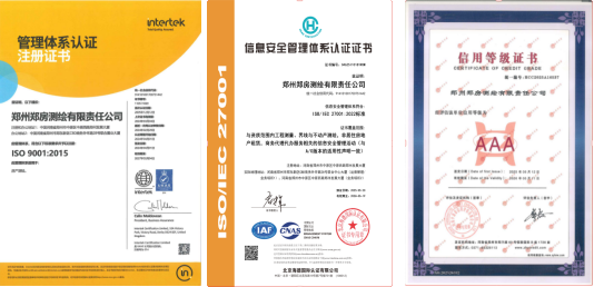 結(jié)合2019年取得的質(zhì)量管理體系(ISO9001),鄭房測(cè)繪已成功通過“三標(biāo)體系”認(rèn)證。這些榮譽(yù),不僅是公司在規(guī)范化運(yùn)營、風(fēng)險(xiǎn)防控、精細(xì)化管理等維度交出的優(yōu)異答卷,更標(biāo)志著公司企業(yè)綜合實(shí)力和核心競(jìng)爭力的增強(qiáng),顯著提升公司品牌形象與市場(chǎng)信譽(yù)度,增強(qiáng)客戶對(duì)企業(yè)的信任,為深耕測(cè)繪地理信息市場(chǎng)奠定堅(jiān)實(shí)基礎(chǔ),為開啟管理升級(jí)與戰(zhàn)略躍升譜寫新篇章。
