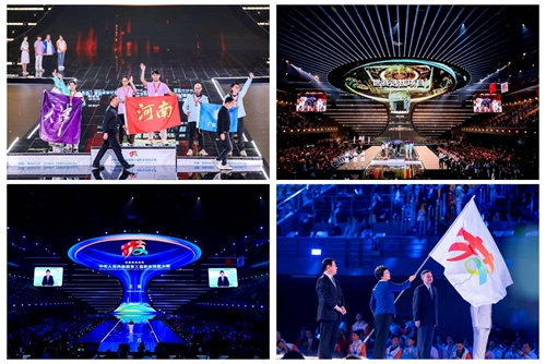 華燈璀璨,掌聲如潮。9月23日晚,當348名獲獎選手高舉隊旗與獎?wù)?,當大賽會旗在璀璨的舞臺上完成交接傳遞,當良渚文化和人形機器人在現(xiàn)場8000余名觀眾的歡呼聲中共舞……中華人民共和國第三屆職業(yè)技能大賽閉幕式在鄭州奧體中心體育館完美落幕!
