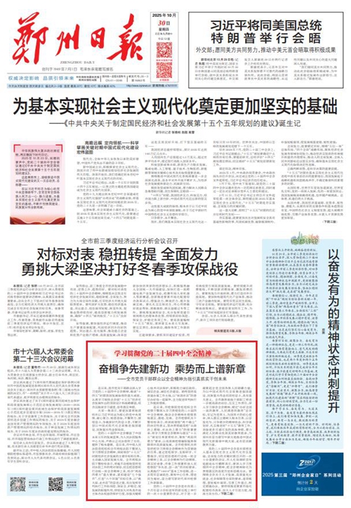 黨的二十屆四中全會(huì)擘畫了中國(guó)式現(xiàn)代化建設(shè)的宏偉藍(lán)圖,為新時(shí)代新征程國(guó)有企業(yè)改革發(fā)展指明前進(jìn)方向、提供根本遵循,鄭州城發(fā)集團(tuán)廣大黨員干部群眾深受鼓舞、倍感振奮。近日,《鄭州日?qǐng)?bào)》《鄭州晚報(bào)》開(kāi)設(shè)了【學(xué)習(xí)貫徹黨的二十屆四中全會(huì)精神】專欄,2025年10月30日,報(bào)道了鄭州城發(fā)集團(tuán)深入學(xué)習(xí)貫徹落實(shí)黨的二十屆四中全會(huì)精神,以全會(huì)精神為指引真抓實(shí)干創(chuàng)未來(lái)。