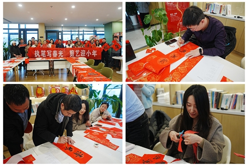 城發(fā)·金岱智慧產(chǎn)業(yè)園工會(huì)聯(lián)合會(huì)邀園區(qū)職工寫春聯(lián)、剪窗花,在一紙紅箋、一剪朱霞之間,大家以手造物、以心傳情,為園區(qū)披上新春的盛裝。