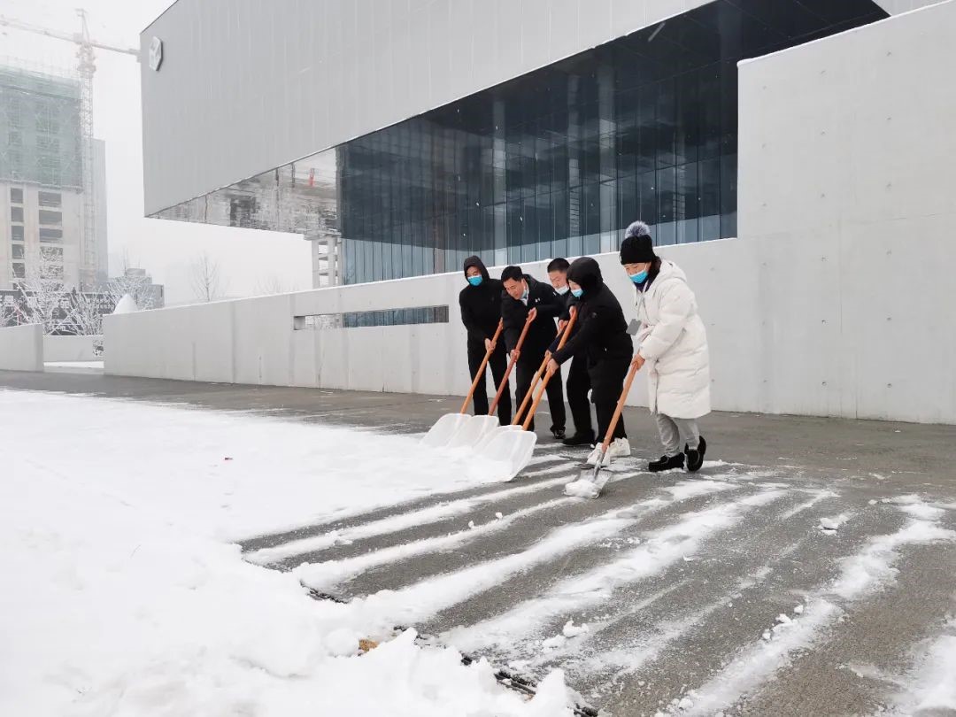 全力以赴,分秒必爭。4日下午突如其來的降雪,給第二天的檢測工作帶來了極大困難。面對艱巨的任務(wù),為切實做好全員核酸檢測準備工作,保障參檢群眾生命財產(chǎn)安全。鄭地發(fā)展公司作為國企,危急關(guān)頭彰顯國企擔當,第一時間作出動員號召,由黨員同志帶頭,迅速組建了一支30余人的志愿服務(wù)隊,連夜開始了場地清理布置工作,調(diào)配防疫物資、準備消毒液、架設(shè)引導(dǎo)牌、拉設(shè)警戒線、張貼掃碼紙、擺放檢測臺,對商務(wù)服務(wù)中心進行全面消殺,同時組織新加入的志愿者開展模擬演練,幫助大家快速熟悉服務(wù)工作,保證各個環(huán)節(jié)有條不紊。5日清晨,志愿者們早早來到商務(wù)服務(wù)中心現(xiàn)場清理積雪,僅僅半個小時,園區(qū)便露出了干凈整潔的路面,為迎接檢測做好了充分準備。